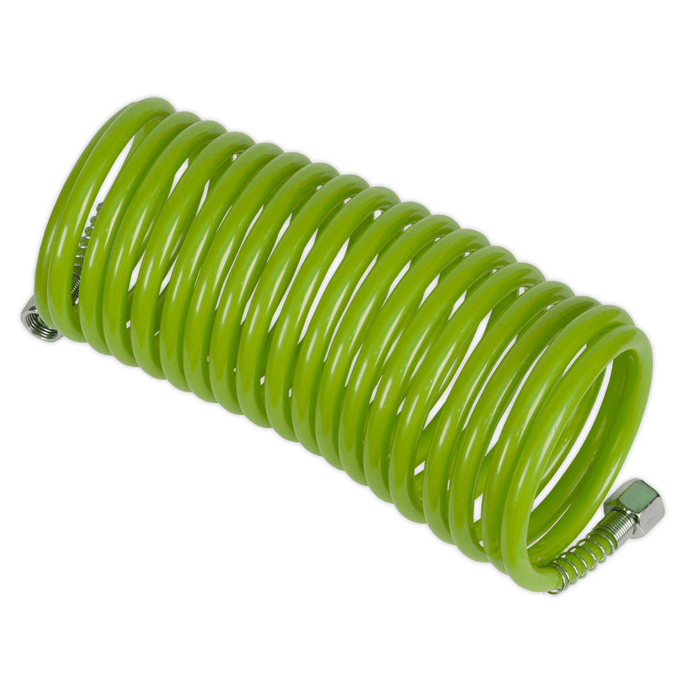 Sealey SA335G PE Coiled Air Hose 5m x 5mm with 1/4"BSP Unions - Green