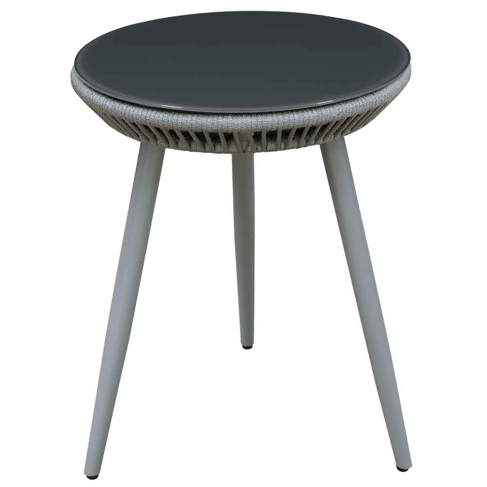 Enhance your outdoor living space with the Dellonda DG58 Echo 3-Piece Modern Outdoor Balcony Chair & Glass Top Bistro Table Set, available at Trade Counter Direct. This contemporary bistro set is designed for both style and durability, making it ideal for balconies, gardens, or patios. Crafted from powder coated rust proof aluminium and featuring weatherproof Textilene® rope, the set is built to withstand the elements while providing a comfortable and inviting seating area.