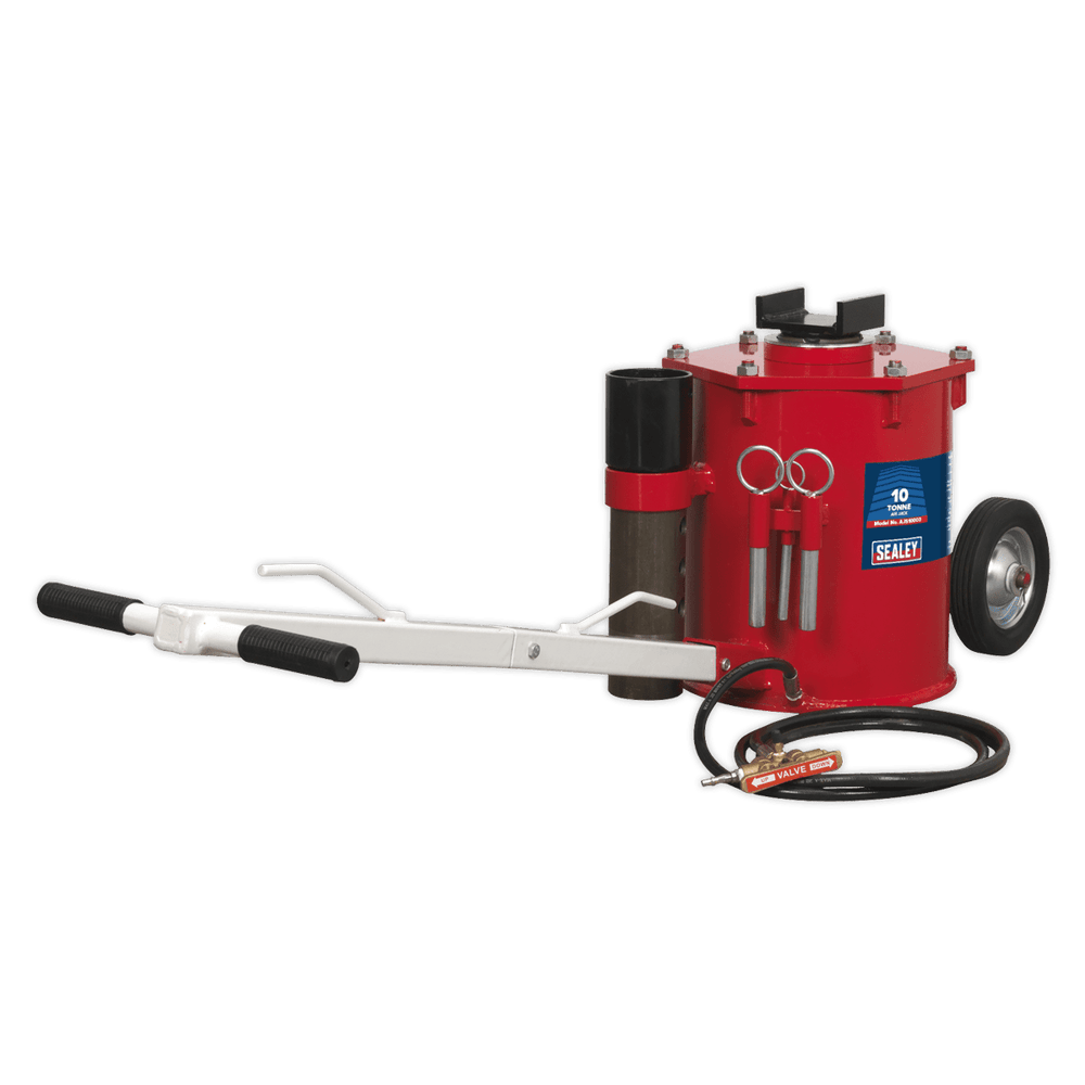 With multiple lifting and locking positions, a removable two-piece handle for convenient storage, and a substantial maximum capacity, the Sealey AJS10000 ensures efficient and safe operation. Requiring 200 psi of air pressure to achieve optimum performance, it is built to handle the rigours of heavy-duty lifting with ease.