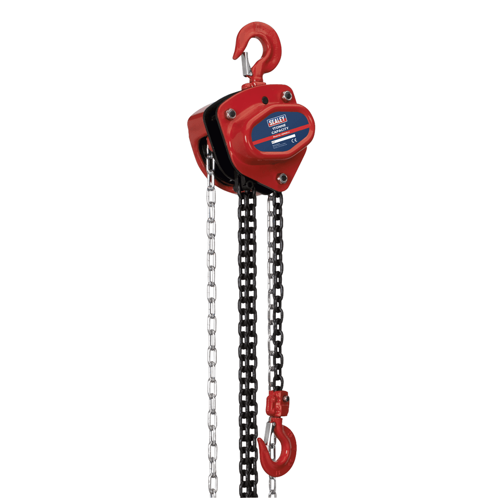 Built with high-quality materials and safety mechanisms, the Sealey CB1000 ensures secure and efficient lifting operations. Its hardened alloy chains and safety-latched load hooks provide additional peace of mind during use.