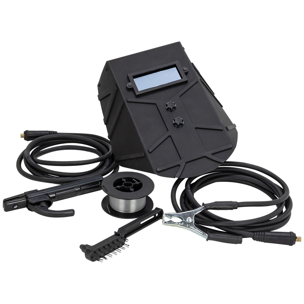 | Kit Contents | Wired-in MIG torch, 3 m 200A earth lead, 3 m 200A electrode lead, handheld shield, chipping hammer, wire brush, 200 g 0.8 mm flux-cored wire, 2 x 0.8 mm MIG contact tips |