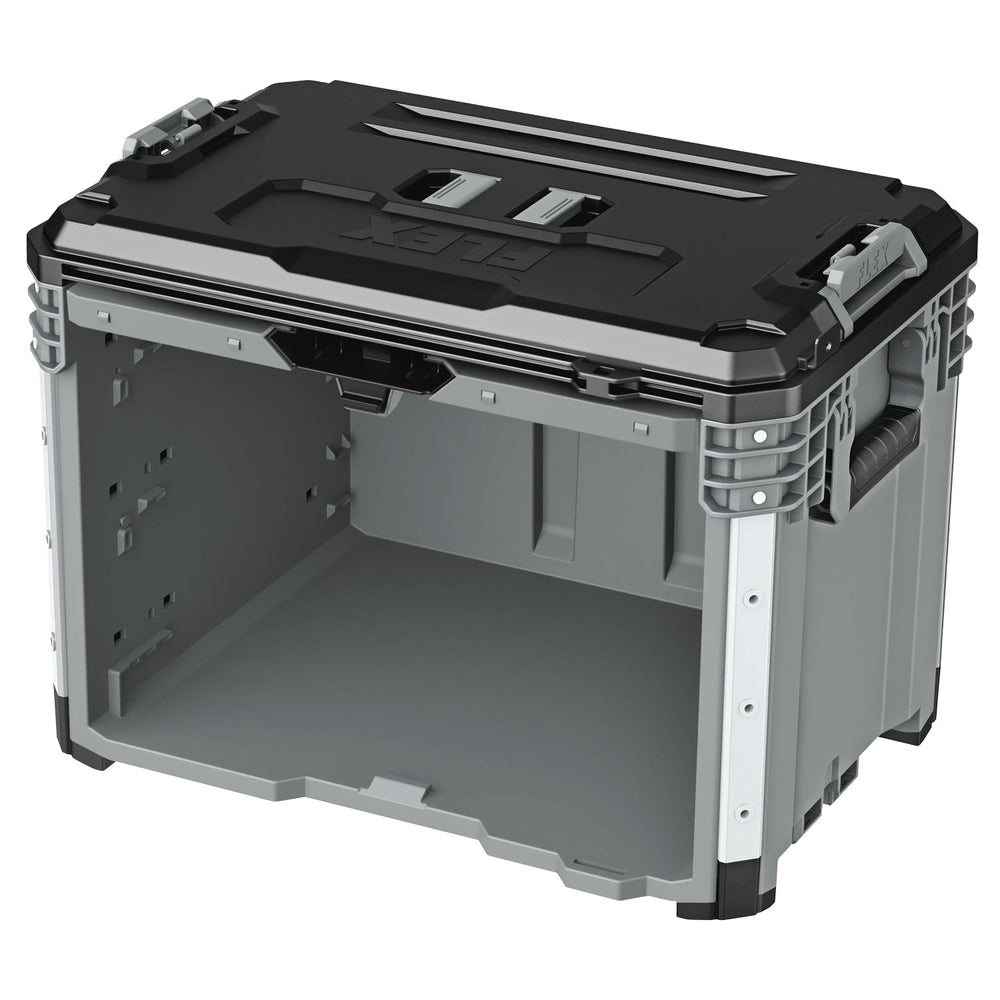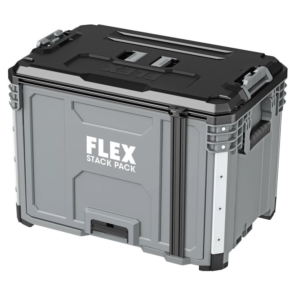 Constructed with impact-resistant materials and aluminium-reinforced corners, the FLEX Garage Box offers reliable protection against knocks and harsh conditions. Its spacious interior accommodates power tools such as circular saws, drills, and grinders, making it an ideal choice for both workshop and on-site use.