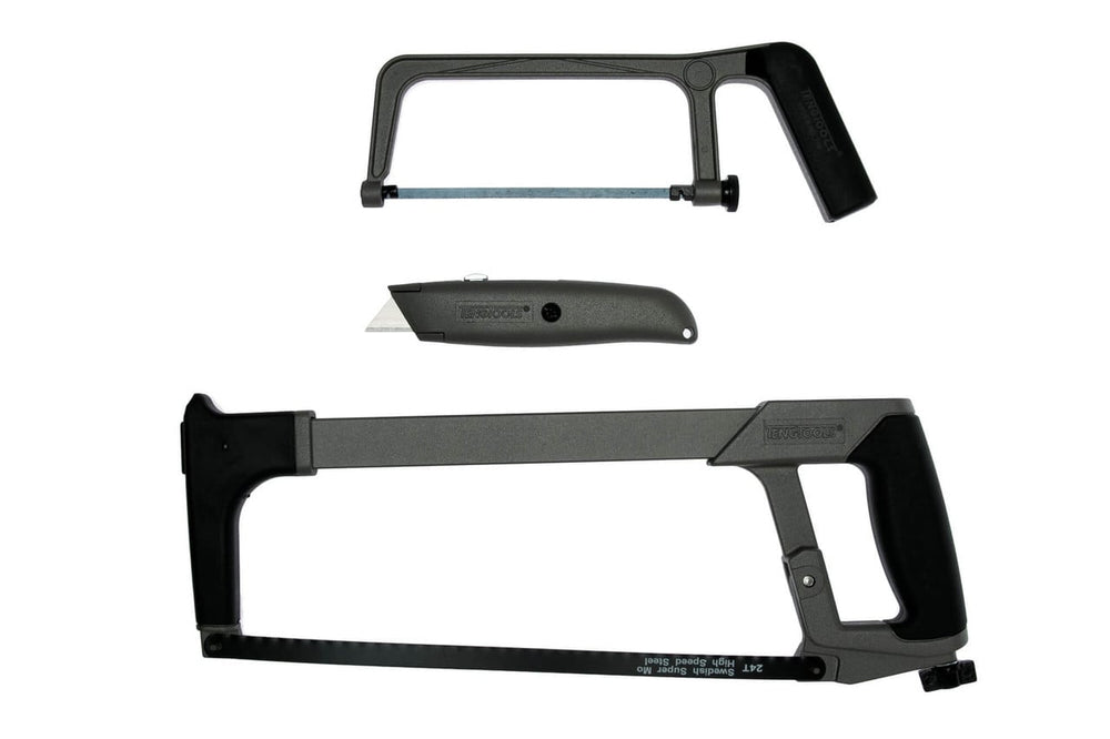 - Comprehensive cutting set including utility knife, junior hacksaw, and 12" hacksaw