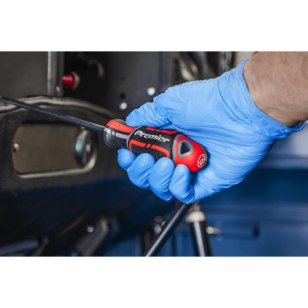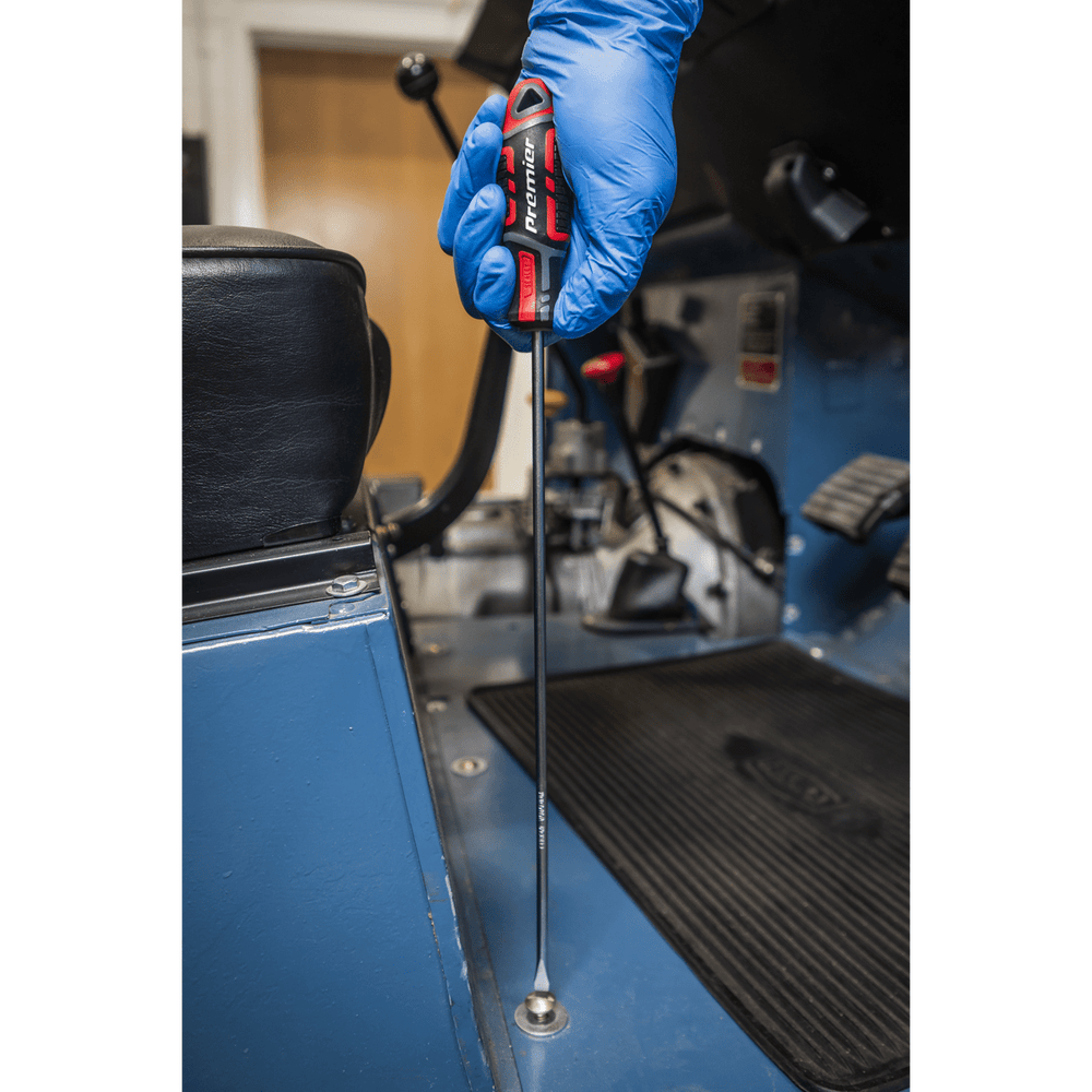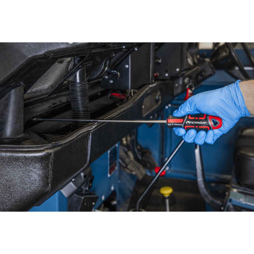 The Sealey Premier GripMAX Extra-Long Screwdriver Set 3pc, available from Trade Counter Direct, is engineered for professional daily use where access is restricted. Each screwdriver features a 300 mm chrome vanadium steel shaft with a satin finish, providing durability and corrosion resistance. Ergonomic soft grip handles ensure maximum power transfer and comfort during extended tasks, making this set an essential addition to any professional toolkit.