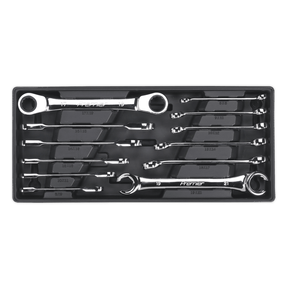 Sealey TBT13 Tool Tray with Flare Nut & Ratchet Ring Spanner Set – 12 Piece