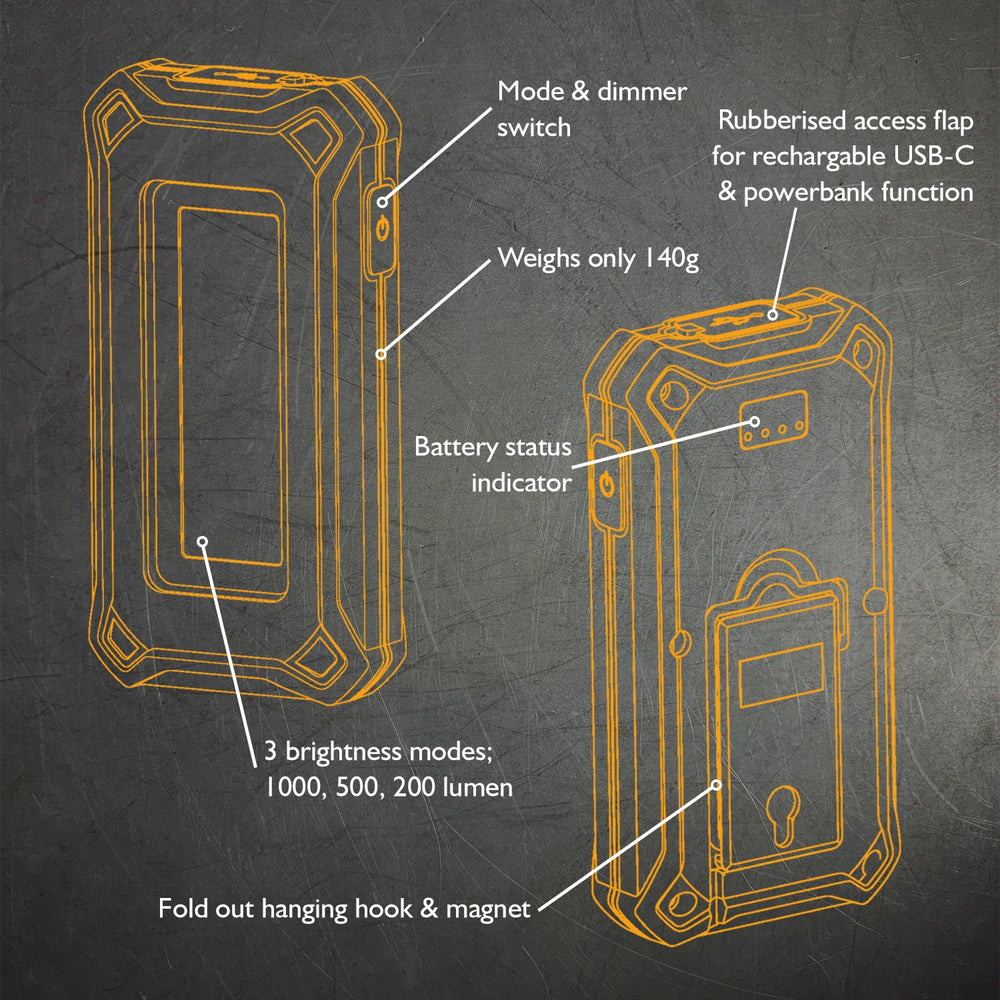 This powerful palm-sized inspection and work light delivers an impressive 1000 lumens while weighing just 140g, making it ideal for everyday carry. Compact enough to fit in your pocket yet powerful enough for demanding tasks, it’s the perfect lighting solution for professionals who need reliable illumination on hand at all times.