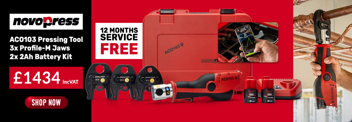 Novopress ACO103 Pressing Tool - 3x Profile-M Jaws - 2x 2Ah Battery Kit