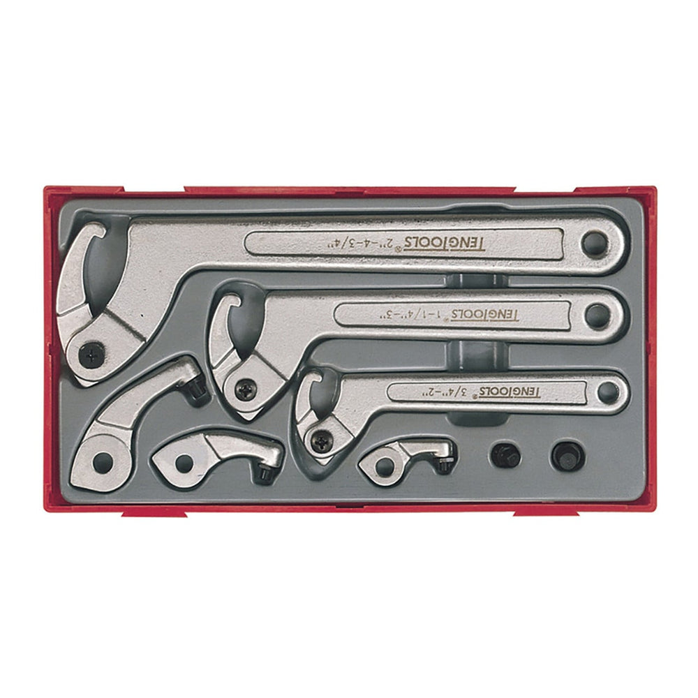 - Comprises 3 hook spanners, 3 pin adaptors, and 2 spare pins