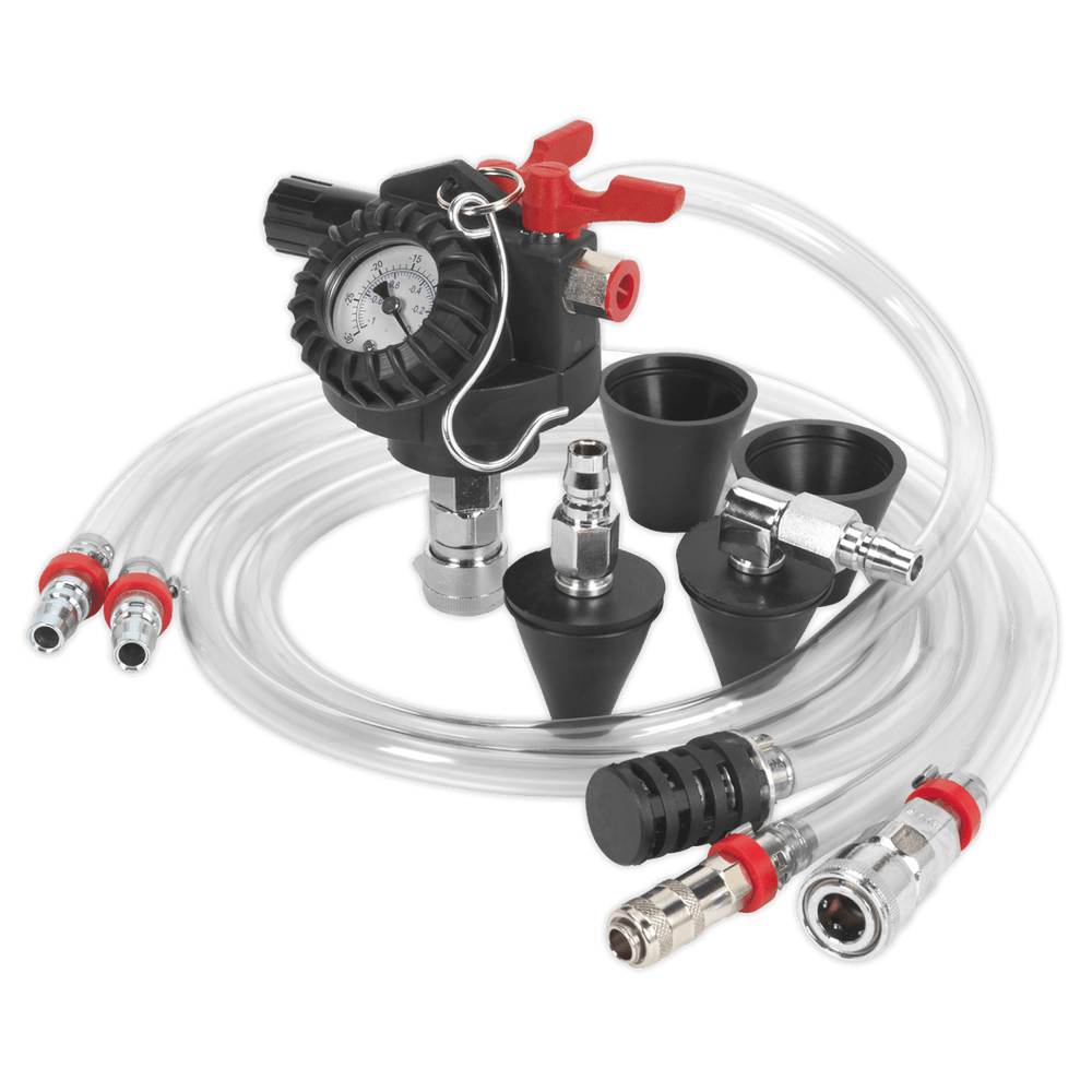 This cooling system filler not only reduces system filling time but also automatically performs a leak test, providing added assurance during maintenance. Compatible with a range of Sealey cooling system pressure caps, the VS0041 offers a versatile and straightforward solution for coolant servicing tasks.