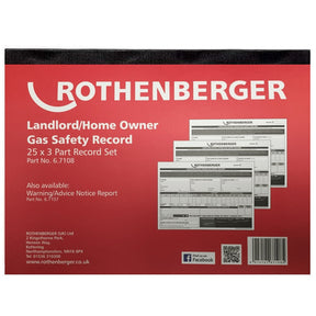 Rothenberger Gas safety certificate record pad (25 x 3 Part)