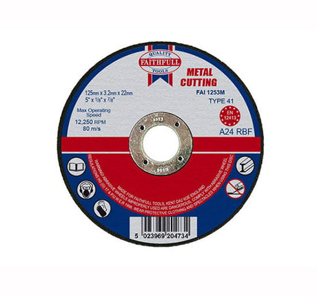 Faithfull Cut Off Disc for Metal 125 x 3.2 x 22mm - Disc Flatcut