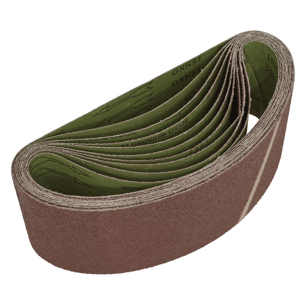 Supplied in a convenient pack of ten, these belts are engineered to provide consistent results and durability, making them a practical choice for a range of sanding applications on wood surfaces.