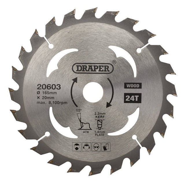 Draper SBW1 TCT Circular Saw Blade for Wood, 165 x 20mm, 24T - (20603)