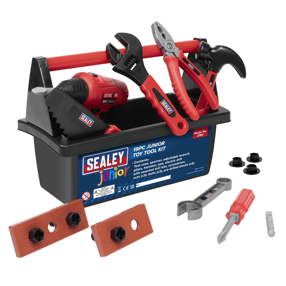 With 19 pieces, including a working drill, spanner, adjustable wrench, and more, the Sealey JTK1 encourages imaginative role play and helps develop basic tool handling skills in a supervised environment.