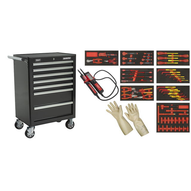 Sealey TBTECOMBO2 Insulated Tool Kit with 7 Drawer Rollcab – 63 Piece