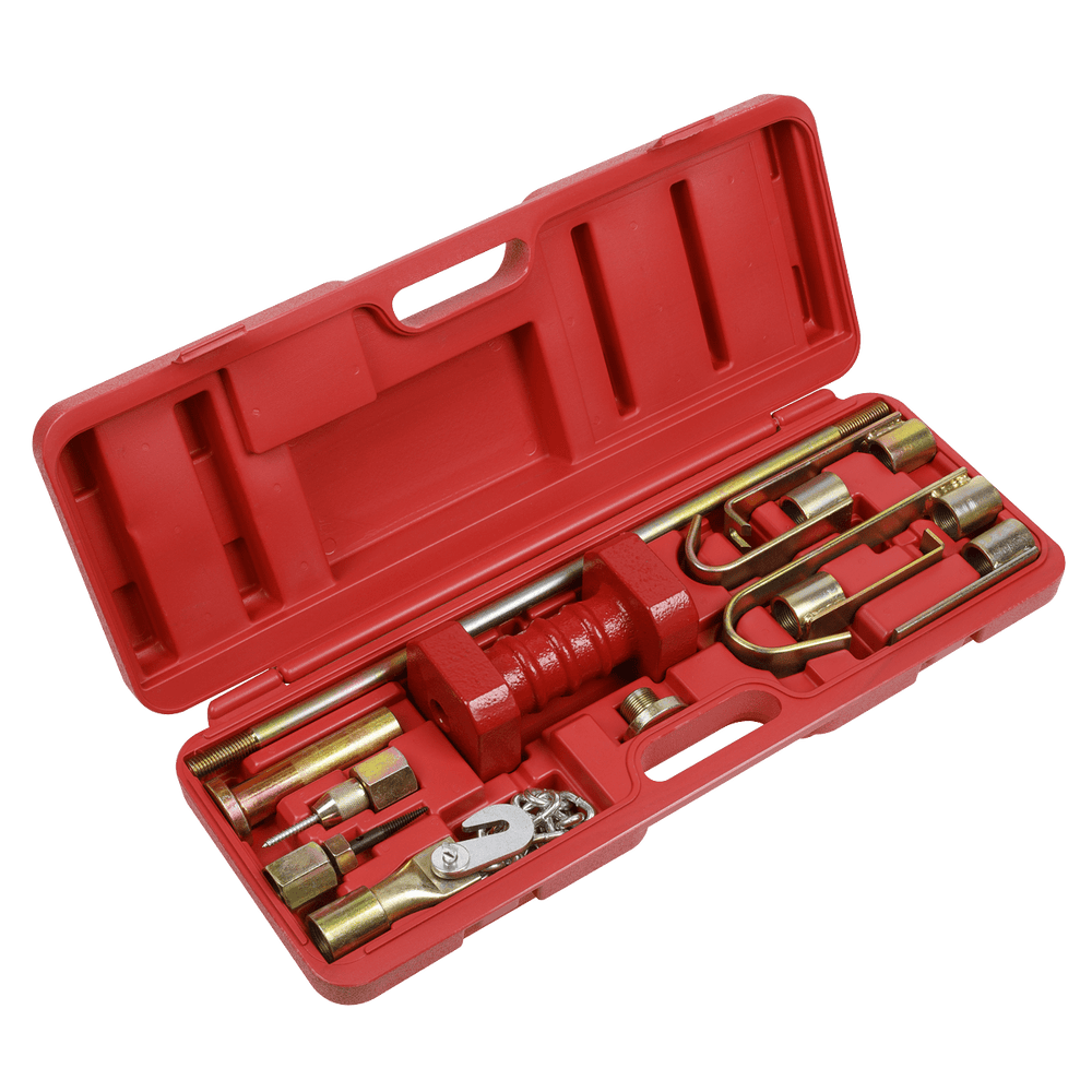 The Sealey DP90 10pc Heavy-Duty Slide Hammer Set, available from Trade Counter Direct, is engineered for demanding automotive repair tasks. Designed for use on body panels and vehicle chassis, this robust tool features a substantial 4.4kg sliding weight to deliver effective pulling force. Supplied with a range of attachments in a durable storage case, it is an essential addition for professional workshops and serious enthusiasts alike.