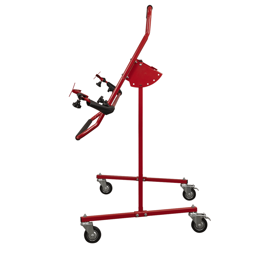 With a rotating frame and foam-cushioned support arms, the Sealey MK81 offers both versatility and protection for delicate components. Fitted with four castors—two of which are braked for added safety—this bumper stand delivers excellent manoeuvrability and stability, making it an essential addition to any bodyshop or garage.