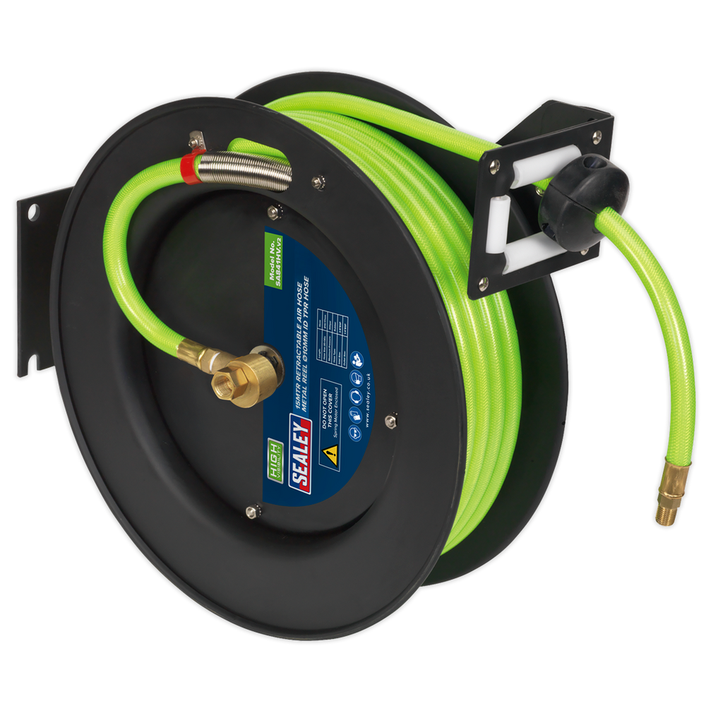 Sealey SA841HV Retractable Air Hose Metal Reel – 15m x 10mm High-Visibility TPR Hose