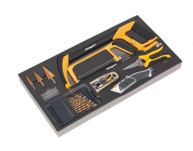 Comprising a 5 drawer topchest, 3 drawer mid-box, and 8 drawer rollcab, all with smooth ball-bearing slides, the AP35TBCOMBO ensures easy access and secure storage for your tools. The inclusion of heavy-duty castors and compatibility with Siegen tool trays further enhances its practicality and versatility.