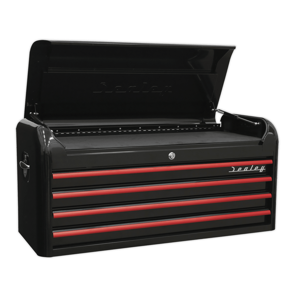 Sealey AP41104BR Topchest 4 Drawer Wide Retro Style – Black with Red Anodised Drawer Pulls