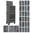 - Includes 5 drawer topchest, 2 drawer mid-box, and 7 drawer rollcab – all in grey