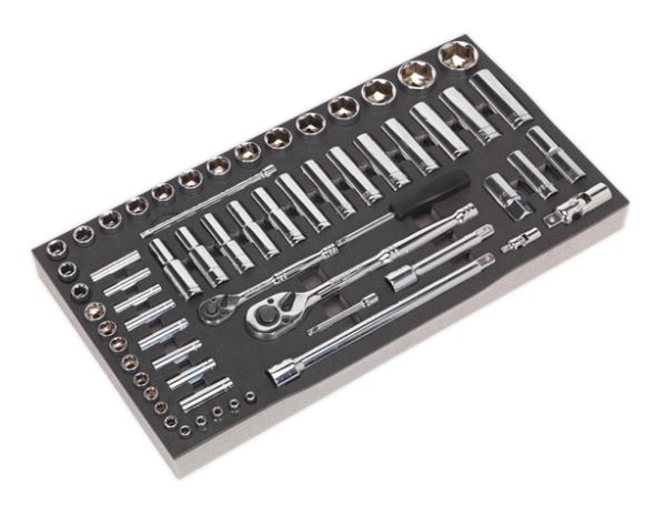 • 62 piece Socket Set 1/4" & 1/2" Sq Drive Metric with Tool Tray (S01122)