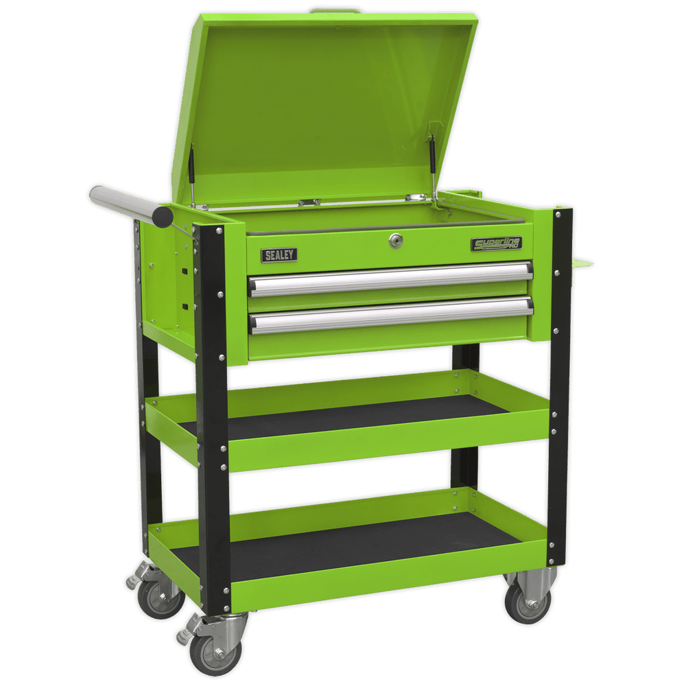 Sealey AP760MHV Heavy-Duty Mobile Tool & Parts Trolley 2 Drawers & Lockable Top - Hi-Vis Green