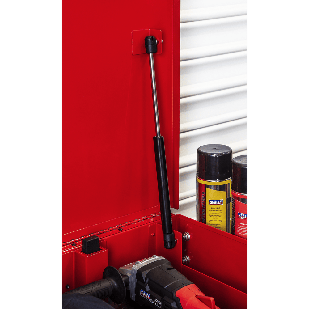 - Lined lower shelf suitable for larger parts or additional tool storage