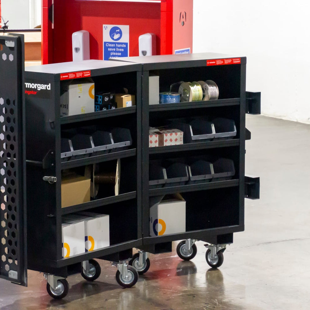 The Armorgard FC5 Fittingstor Mobile Fittings Cabinet, available from Trade Counter Direct, is engineered to provide secure and organised storage for copper fittings, cables, and essential tools. Constructed from robust steel and fitted with multiple security features, this mobile cabinet is ideal for safeguarding valuable M&E components on construction sites or in vans. With its heavy-duty castors and ergonomic design, the FC5 Fittingstor ensures both mobility and durability, making it a trusted choice for professionals seeking reliable site or van storage solutions.