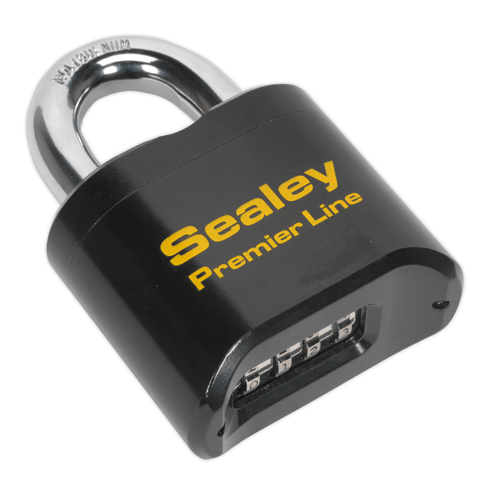 The Sealey PL603 Steel Body Combination Padlock is designed for robust security in demanding environments. Available from Trade Counter Direct, this heavy-duty padlock features a hardened, weather-protected steel body and a Chrome Molybdenum shackle, offering enhanced resistance to cutting and corrosion. Its four easy-to-read number wheels provide a wide range of combination options, making it a versatile and reliable keyless locking solution for a variety of applications.