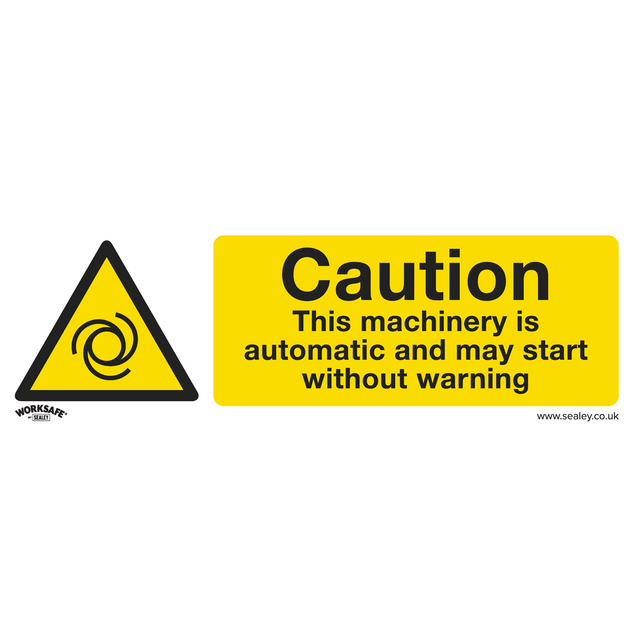 Sealey SS47V10 Warning Safety Sign - Caution Automatic Machinery - Self-Adhesive Vinyl - Pack of 10