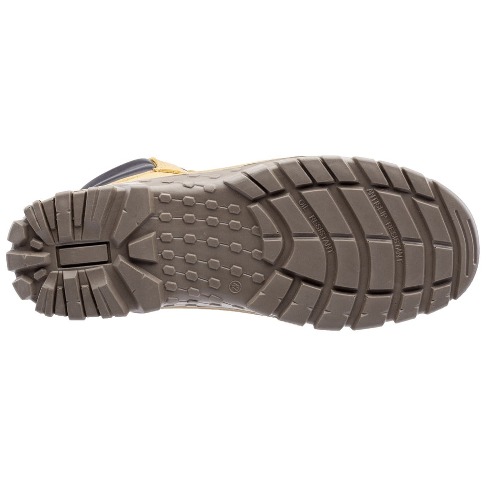 Engineered to meet EN ISO 20345:2011 S3 safety standards, this boot features a steel toe cap, anti-penetration steel midsole, and a dual density PU outsole. Its honey-coloured action nubuck leather upper and breathable mesh lining provide a comfortable fit, making it an excellent choice for professionals seeking dependable safety footwear.