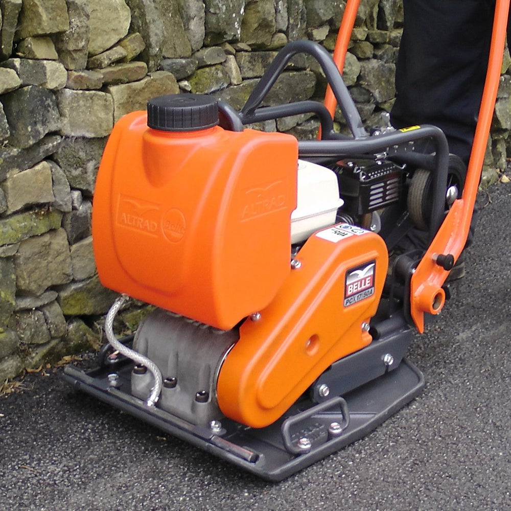 The Belle PCA01 PCX 17/50A Honda Petrol Plate Compactor, available at Trade Counter Direct, is engineered for professional compaction of asphalt and Macadam surfaces. Powered by a robust GX120 Honda petrol engine, this single direction plate compactor delivers reliable performance and efficient compaction, making it an excellent choice for construction and landscaping projects.