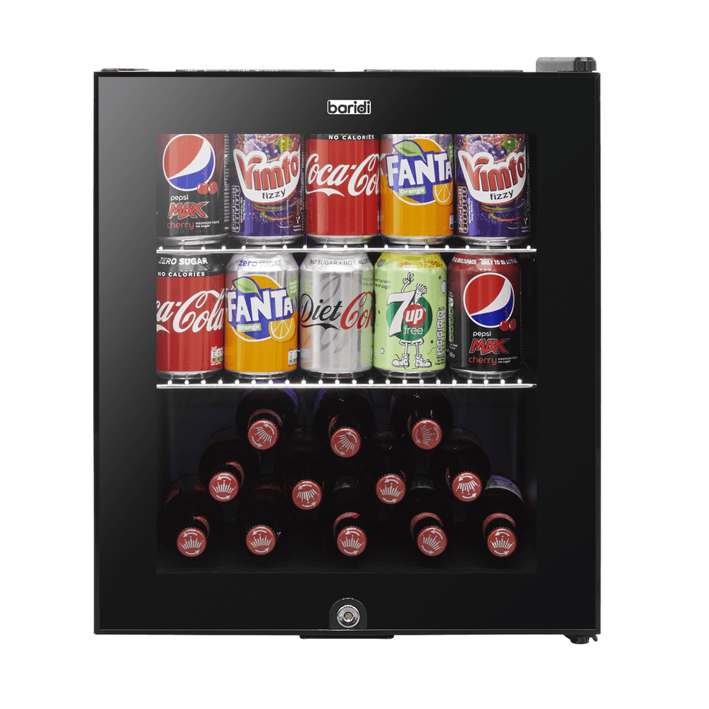 | Included | 1 × Baridi DH12 50L Tabletop Beer & Drinks Mini Fridge (Black & Glass) |