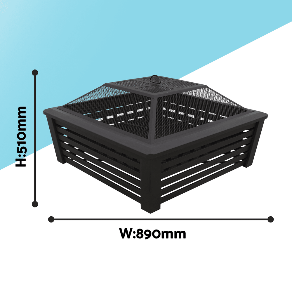 Dellonda DG43 89cm Square Outdoor Fire Pit – Black