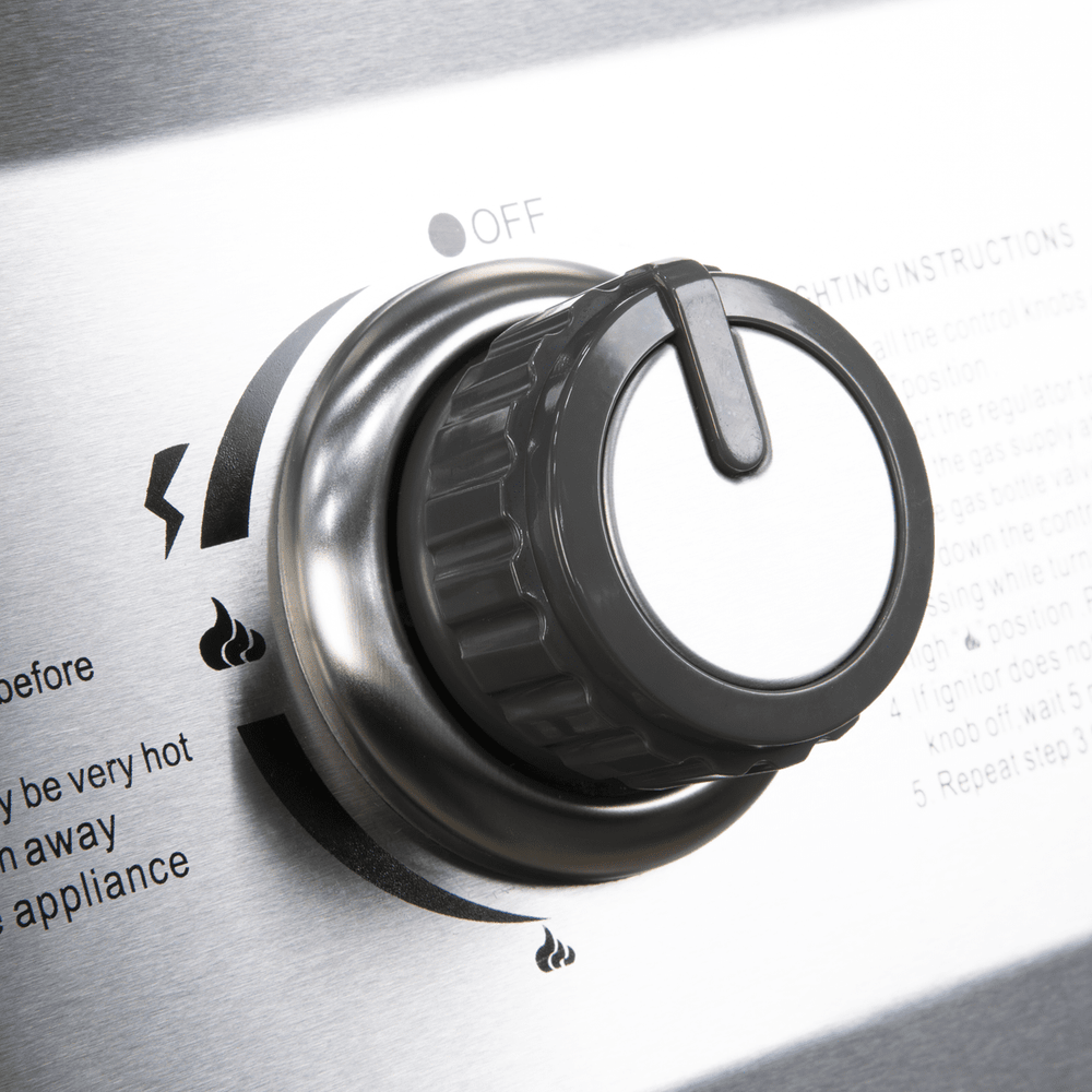 - Four stainless steel main burners for even heat distribution and precise control