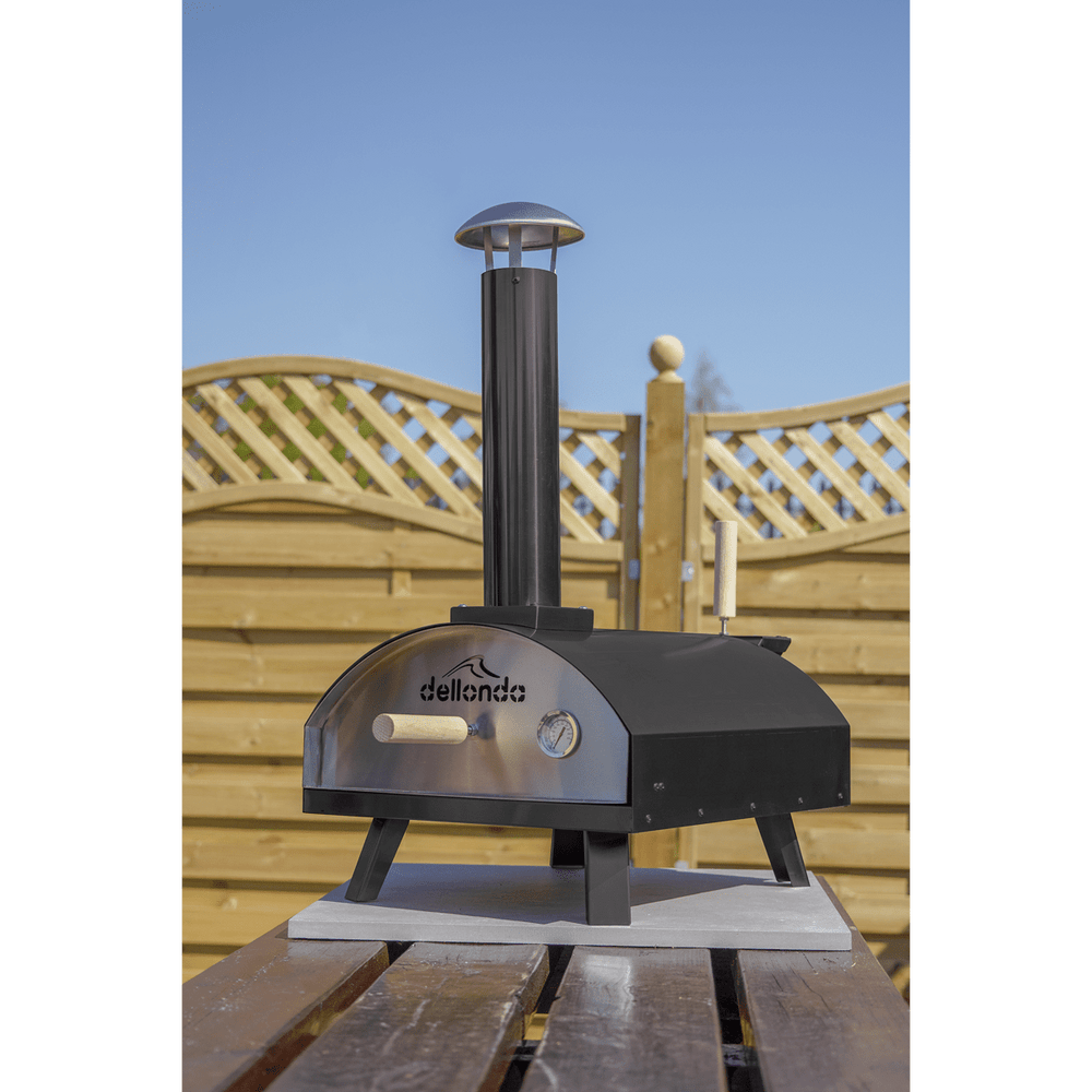 The Dellonda DG10 features a durable black and stainless steel finish, with practical design elements such as hinged legs and a removable chimney for easy transport and storage. With its rapid heat-up time and included accessories, this oven provides everything needed for a superior al fresco cooking experience.