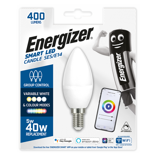Energizer 5W-40W SMART LED Candle SES/E14 Bulb (Alexa/Hey Google/Siri Compatible)
