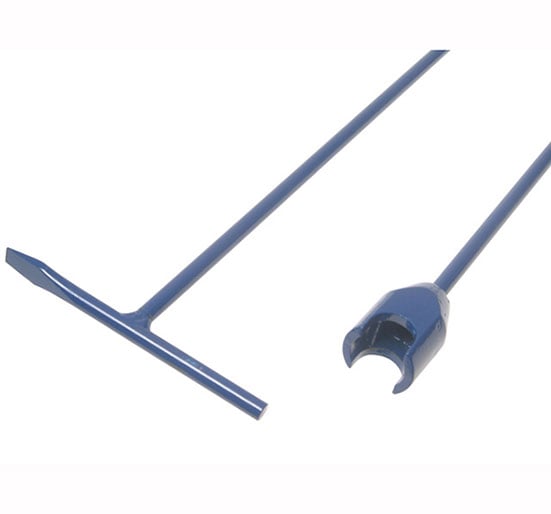- Turning handle features a pointed end for lifting covers