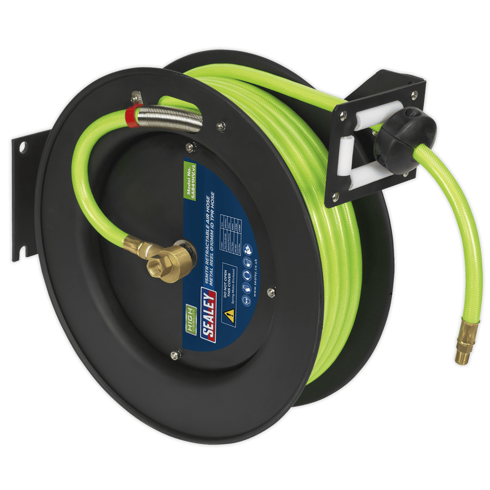 Sealey SA841HV Retractable Air Hose Metal Reel – 15m x 10mm High-Visibility TPR Hose