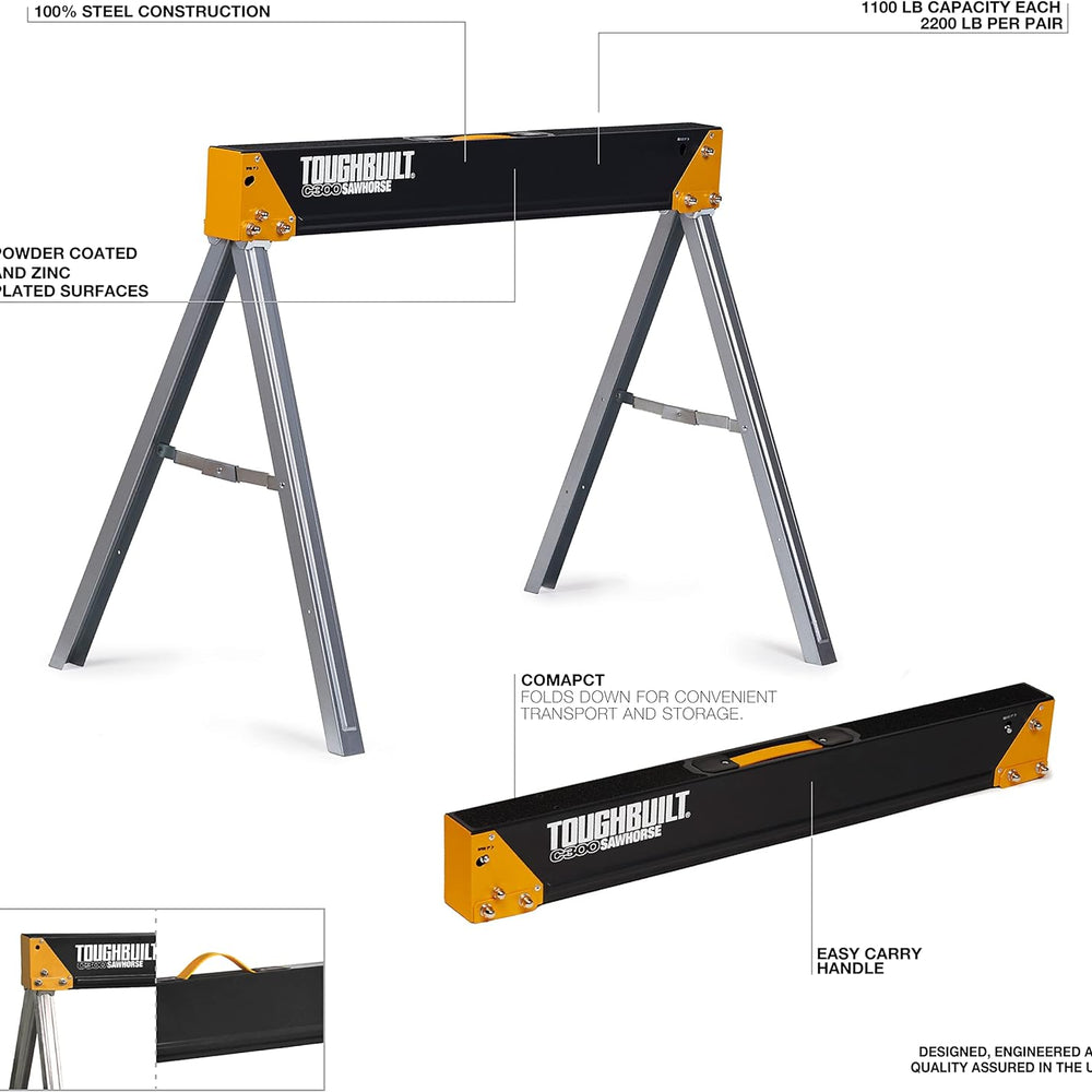 Toughbuilt Folding Saw Horse Twin Pack - Sturdy & Durable - TB-C300-2